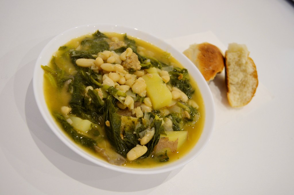 Recently my students introduced me to a local vegetable called “grelos.” English Wikipedia calls it “rapini” or “broccoli rabe,” while my dictionaries call it “turnip tops” or “turnip greens.” I don’t think either are quite right, since “broccoli rabe” to me is a synonym for broccolini, and the pictures of “turnip greens” that I saw on google are a totally different leaf shape. I looked up a grelos stew recipe but had to majorly adapt it given that it used four different types of animal flesh; the final product was thus both a reference to tradition and a distortion of it.
