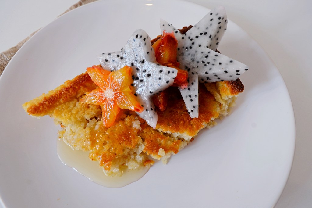 - Bake for 1 hour. Let cool completely before removing from pan. Top with fruit and agave, and enjoy! I used blood orange and dragonfruit.