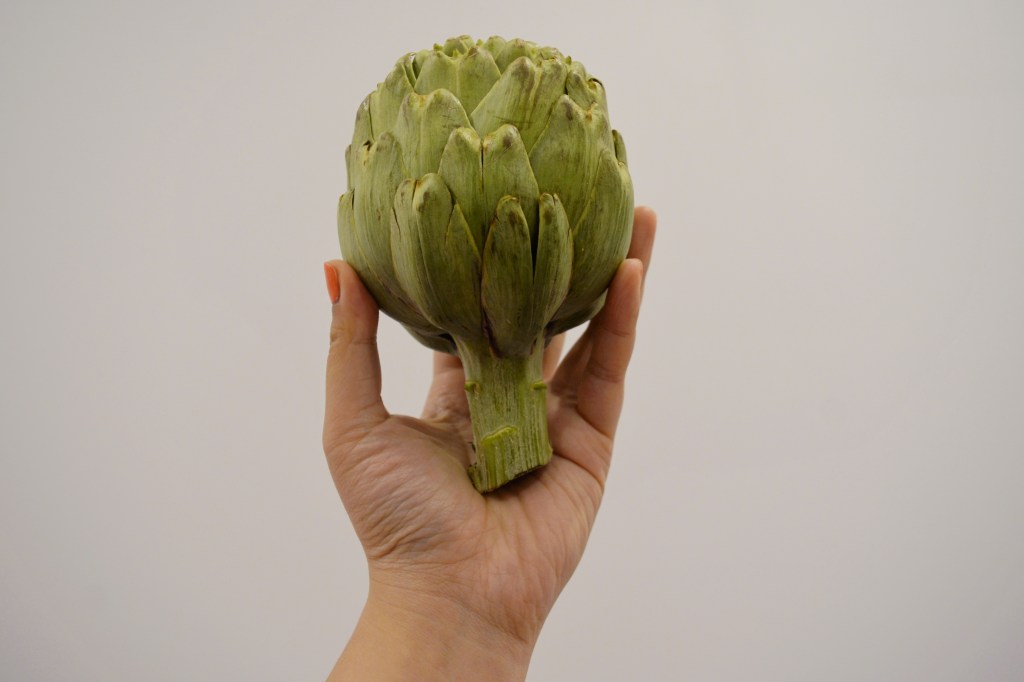 - Pull apart artichoke leaves and cut off any hard green sections until all you have left are the soft yellow insides.