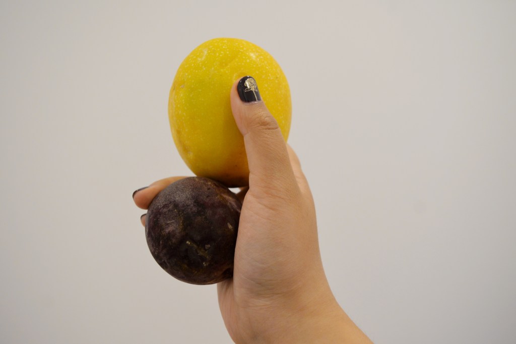 - Spoon passionfruit seeds until they completely cover the canónigos.