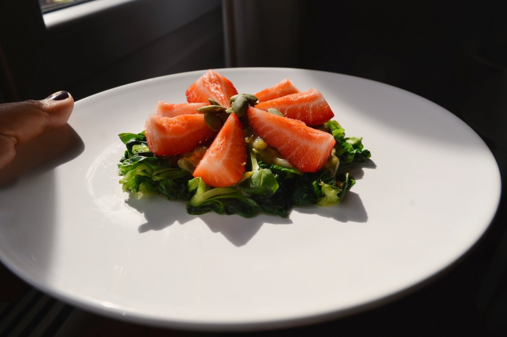 I made this warm salad a while back, and I put salt but not sugar in it so I’m classifying it as savory. If you don’t have passionfruit you could always use a tiny bit of citrus juice, but then you wouldn’t get the crunch of the seeds and it wouldn’t be quite as exciting.