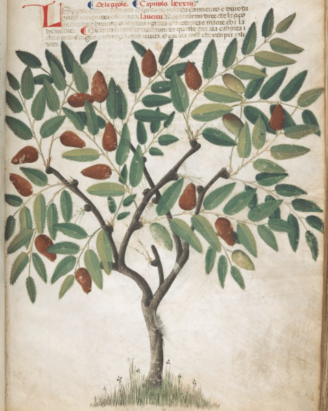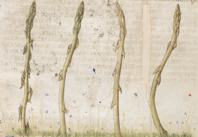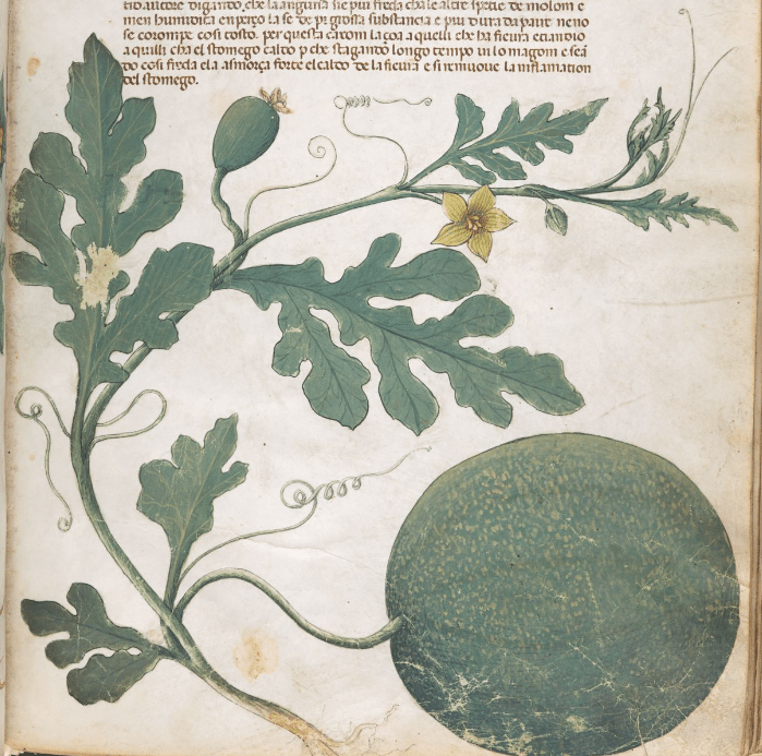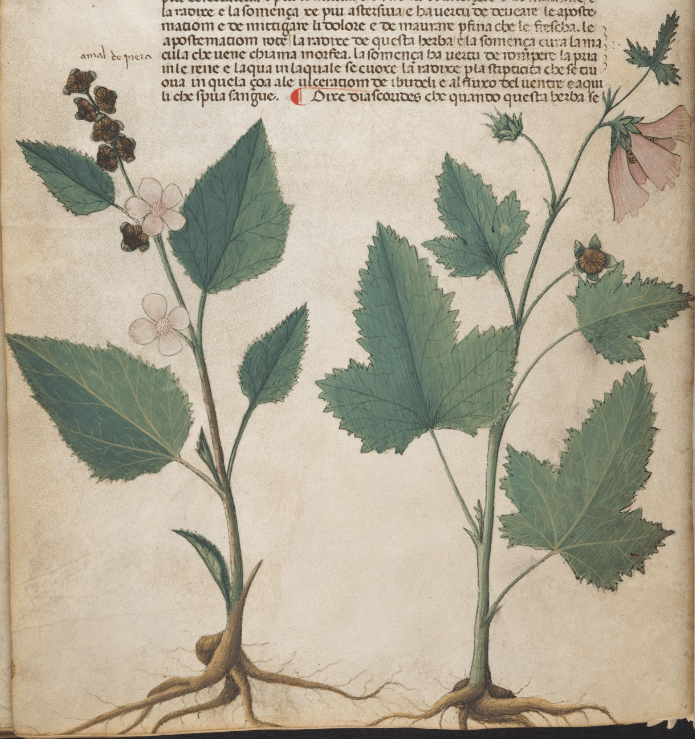 This week I just have a document that I looked at without any intent of analyzing it (nor ability to analyze it, if I’m being honest) and with no (direct, anyway) relation to any significant event, big or small. It is an herbal from the late 14th or early 15th century, with some text that I cannot read (one day I’ll learn paleography but that day is not today) and lots of very detailed and very lovely pictures. As the actual manuscript goes from beautiful and illuminated at the beginning to progressively more plain text, I’ve ordered these by the length of my descriptions: