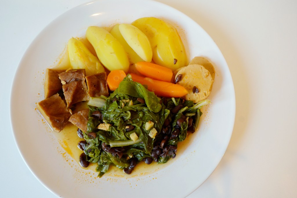 Pessoa was born and died in Lisbon, and the recipe I have today is a local one, something my friends probably had while I asked for the same sad salad and fries over and over again during our time in Lisbon. Again, it is based on Cozinha Vegetariana à Portuguesa. As Iberian dishes tend to do, this dish lacks exciting flavors, but it’s simple and filling.