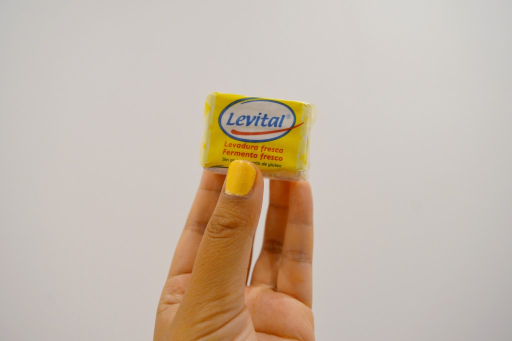 - In a small cup or bowl, break up pieces of the levadura fresca into the warm water. Let sit for 5 minutes.